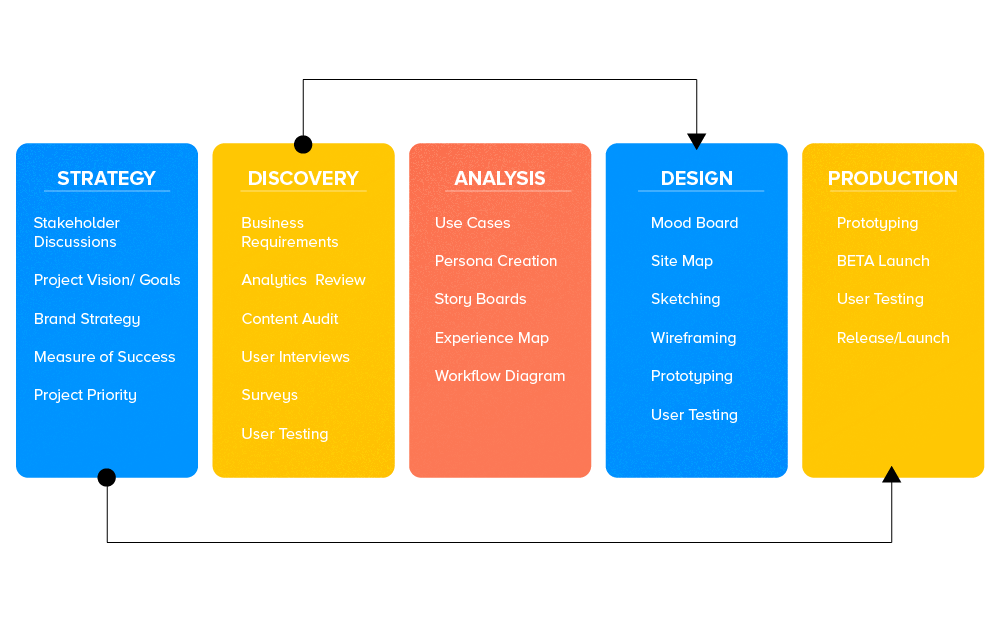 The Product Design framework encompasses disciplines like UX Design, UI Design and Product Management. UI, UX Design is an integral part of the app development process.