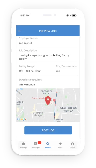 We integrated the functionality of finding employers and employees on the basis of location. This way, employees would be able to connect with employers who are near their vicinity, thus eliminating the excess travel time.